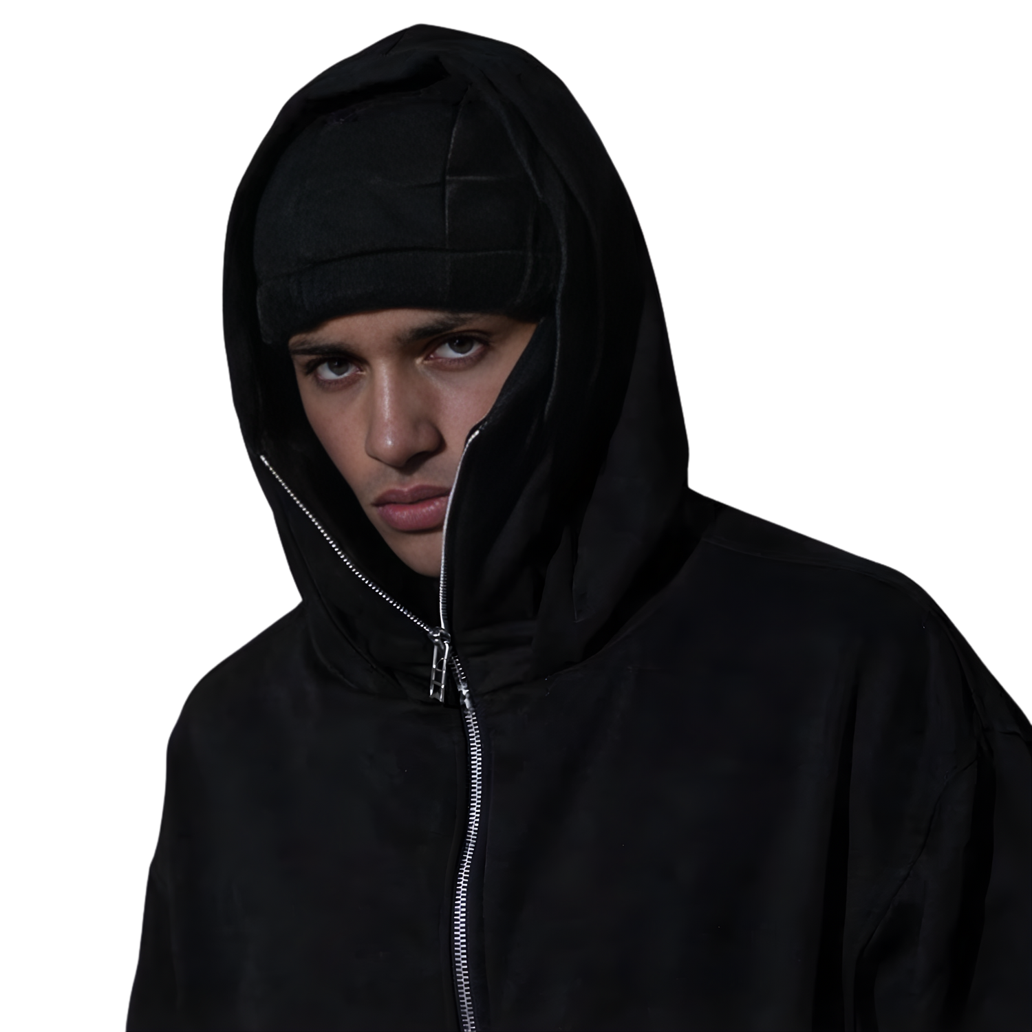Una sola prenda, tres funciones clave: sudadera, abrigo y balaclava integrada. Su cremallera frontal hasta el rostro ayuda a bloquear el viento y protegerte de las bajas temperaturas, sin renunciar al estilo. Máxima comodidad, protección y actitud urbana para el día a día. ❄️